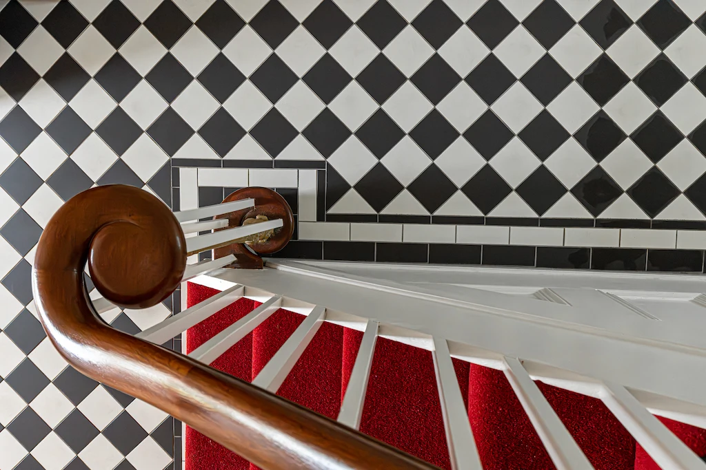 - Timeless Victorian checkerboard look with a neat, simple frame