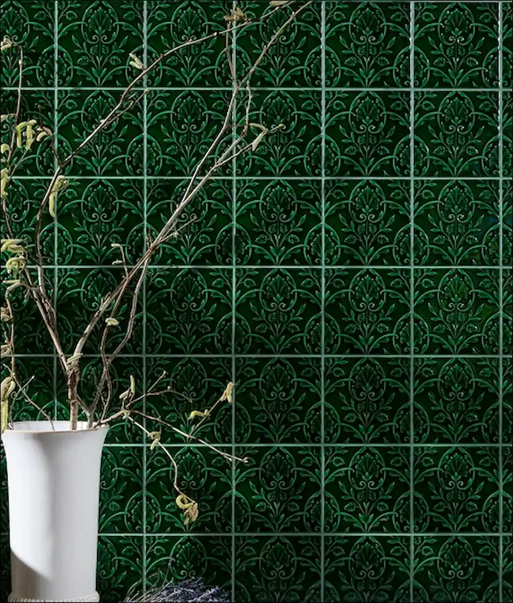 30 Jan 26Hampton Court Vines Olive Green Crackle Glaze Tile | Victorian Style Wall Ceramic Ca’Pietra