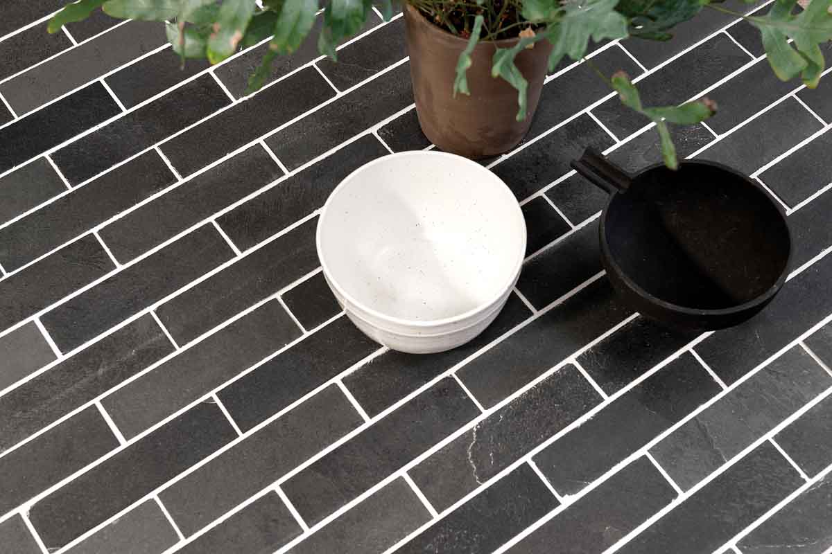 These natural slate tiles are finely riven with calibrated thickness and subtle variations in tone for an urban look and feel. Sealing required.