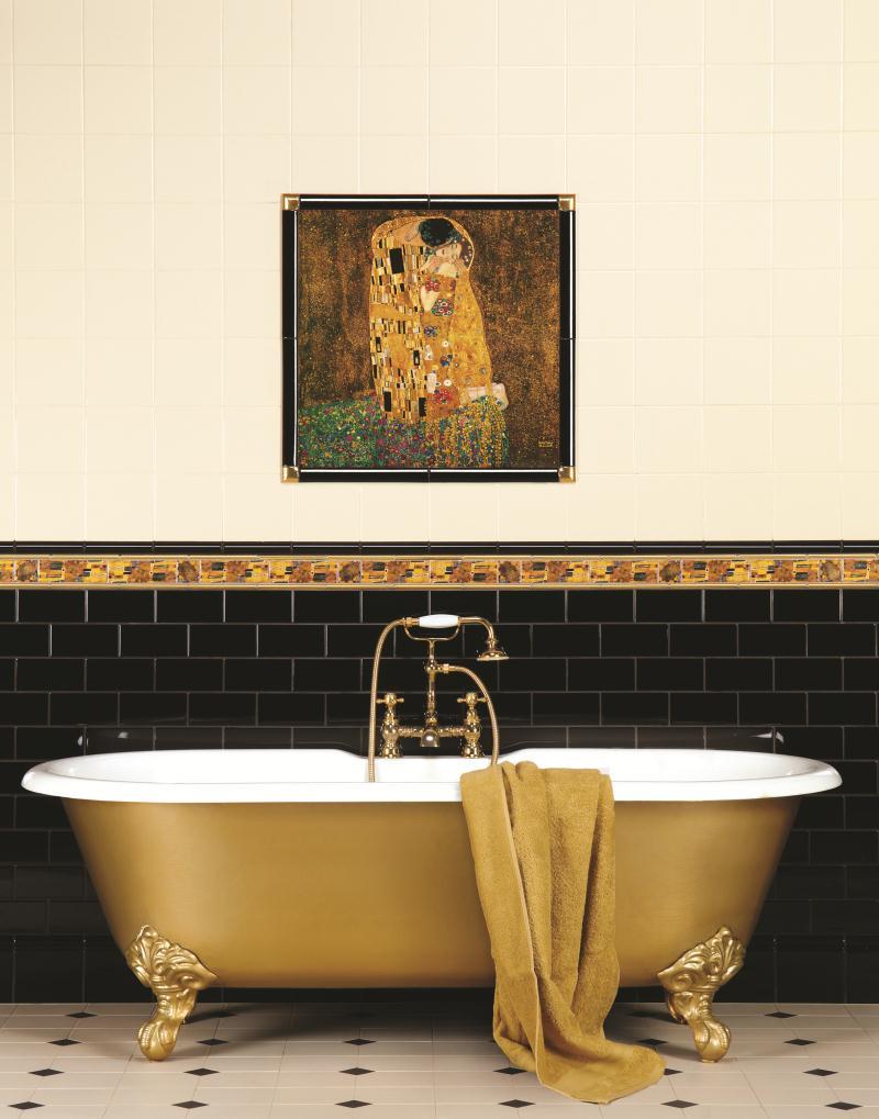 - Victorian style Klimt Border Decorative gold tile with a metallic finish, this tile is a ceramic wall tile suitable for residential applications; it is normally used in creating olde original style designs for Victorian bathrooms, Victorian walls, Victorian kitchens and many more.