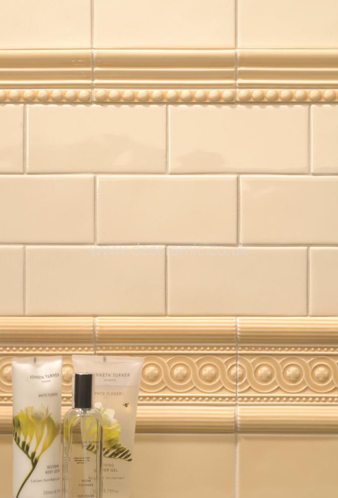 The Artisan Somerleyton Empire Tile 153x15mm is part of the Residence Mouldings has got a reflective finish and is part of the yellow & orange colour family, a ceramic tile suitable for indoor wall applications creating an original style design for your bathroom or kitchen.It can be used primarily in bathroom or kitchen environments, with a soft antique look, a glazed texture this crackle wall tile is sized at 153x15mm
